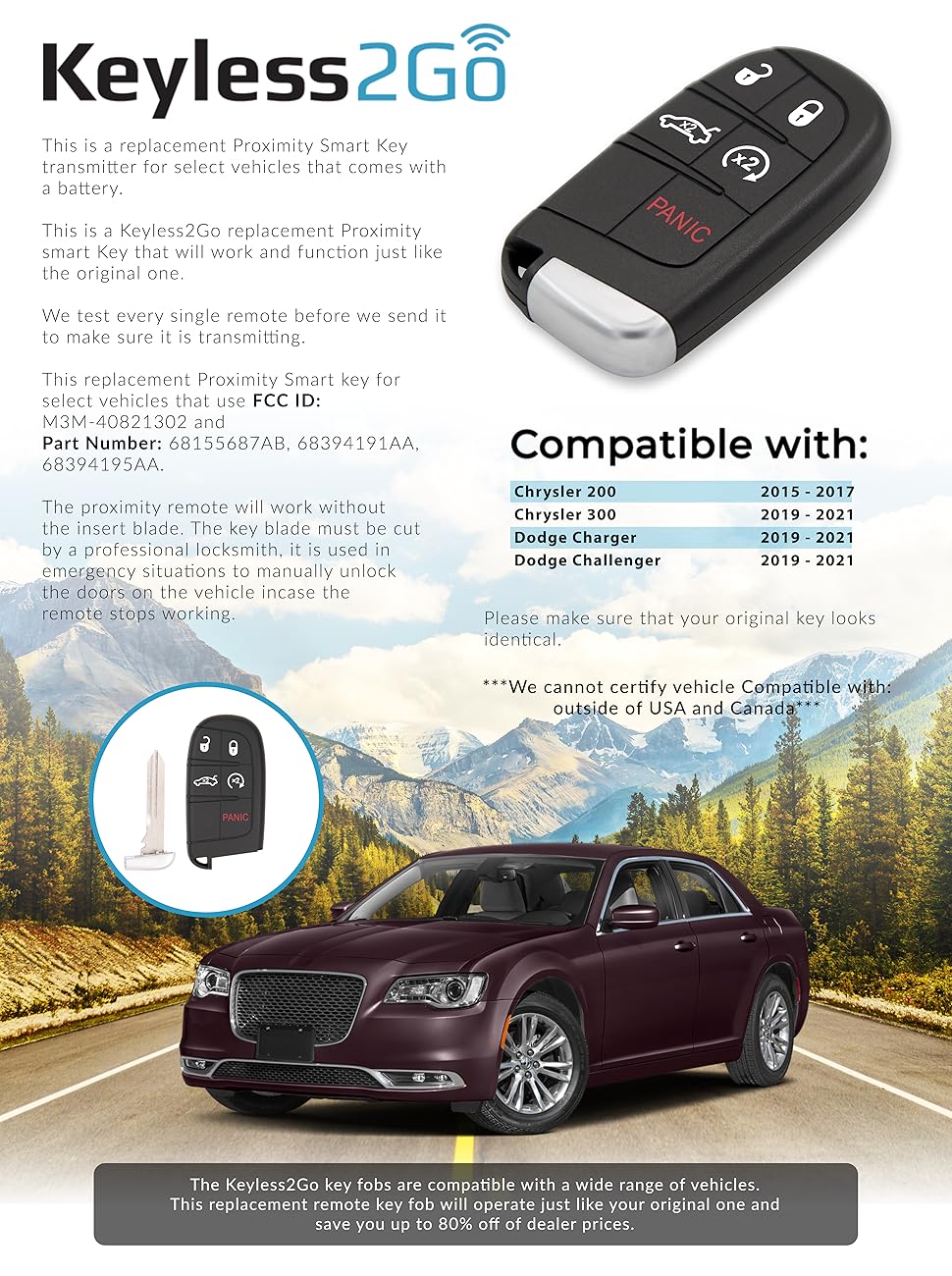 Amazon Com Keyless2go Replacement For 5 Button Proximity Smart Key For Chrysler Dodge M3m 40821302 68155687 Ab Automotive
