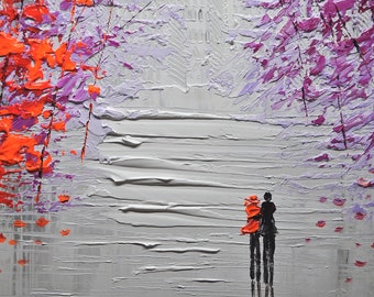 Red Tree Colorful Park Landscape Oil Boho Paintings Knife Etsy